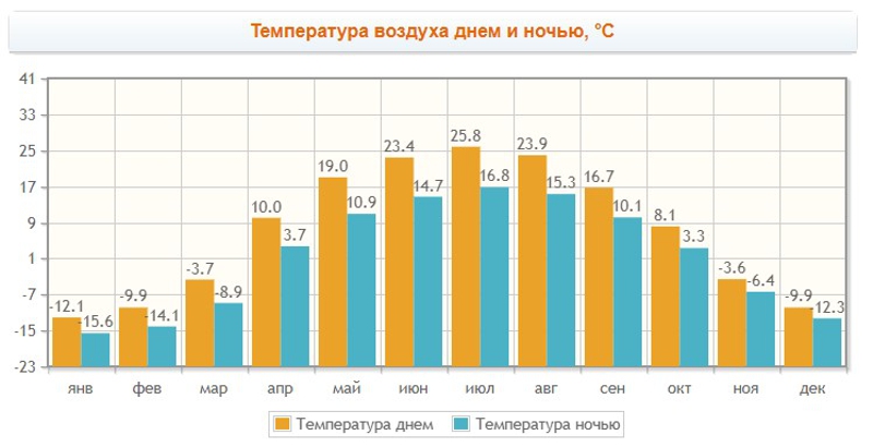 В реальности температуры могут быть не столь критичными. В качестве примера рассмотрим колебания температуры в Астане (Республика Казахстан) на диаграмме, приведенной ниже.